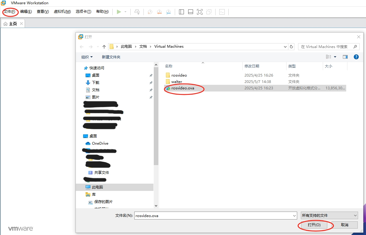 2.打开虚拟机 选择 文件->打开->找到刚下载的.ova镜像文件->打开