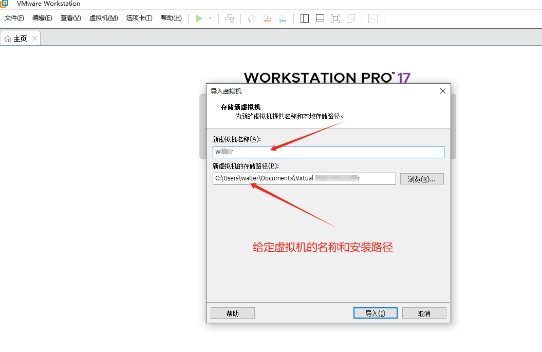 - 输入虚拟机的名称和存储位置,点击“下一步”。