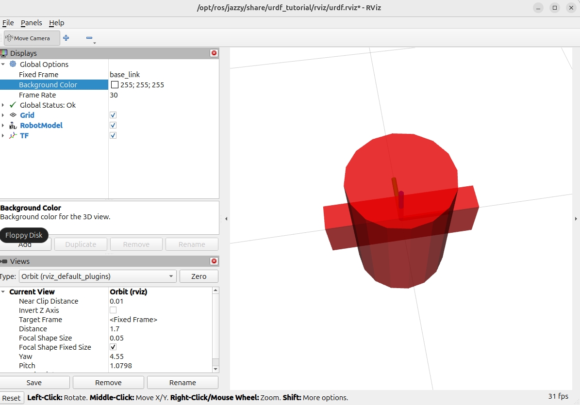 ros2 launch urdf_tutorial display.launch.py model:=urdf/05-visual.urdf